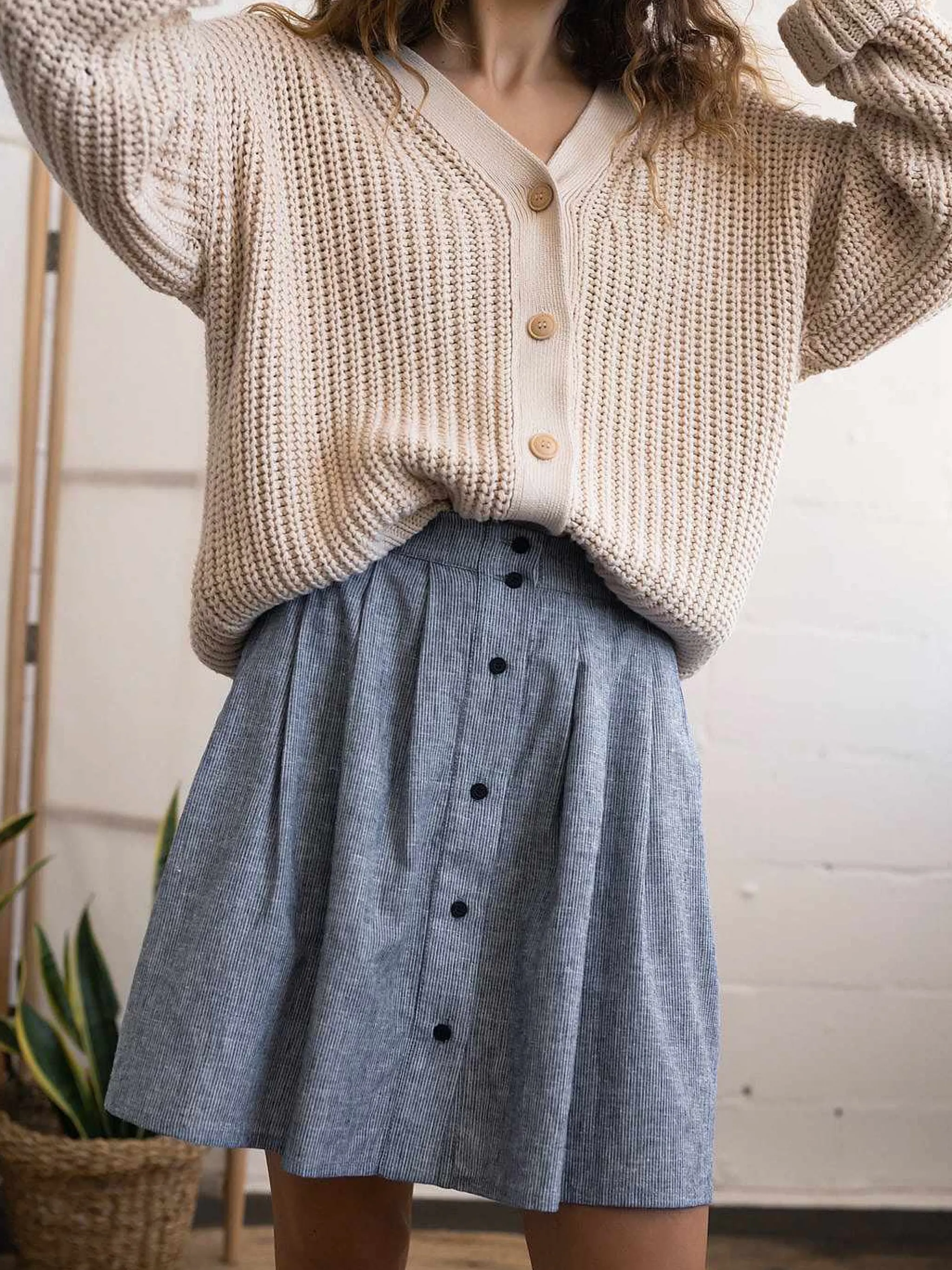 Der Casayeta Ist Ein Button-Down-Rock, Der Die Besten Eigenschaften Von Leinen Und Baumwolle Vereint. Er Verfugt Uber Verspielte Falten Auf Der Vorderseite, Einen Flexiblen Gummibund Auf Der Ruckseite Und Seitentaschen.