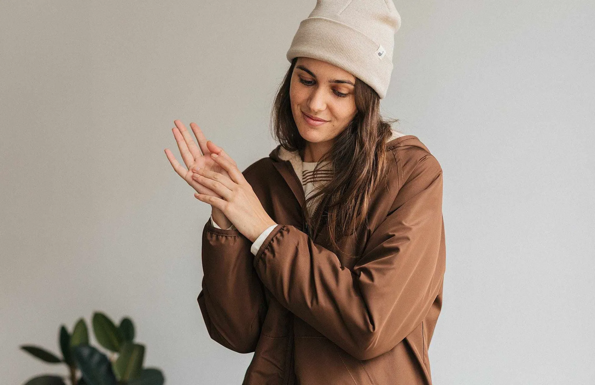 Eine Technische Kapuzenjacke Mit Wasserabweisender Oberflache, Raglanarmeln Und Einem Monomaterial-Design, Das Sich Leicht Recyceln Lasst Und Zu Einem Zirkularen Mode-Highlight Wird.