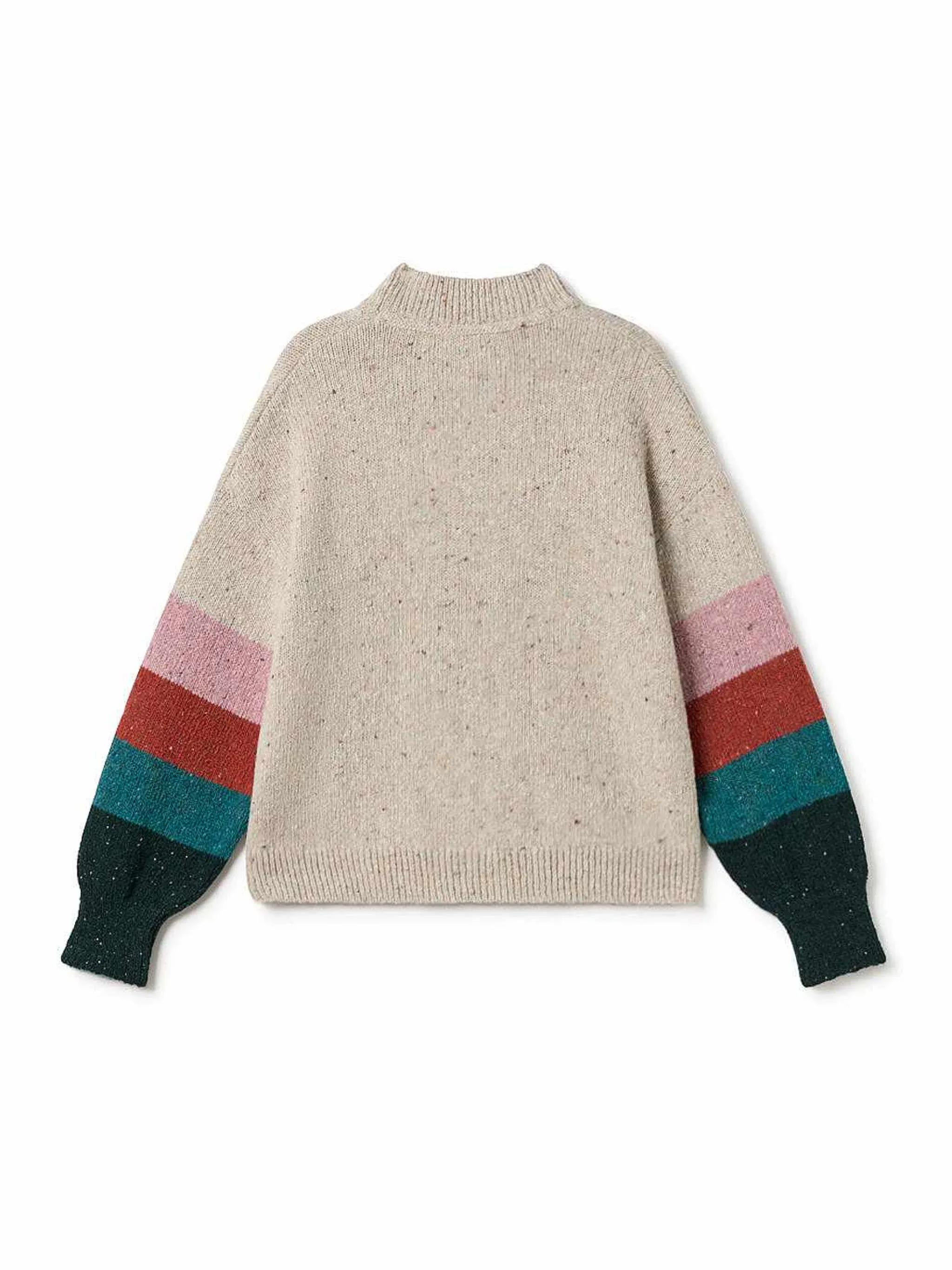 Die Weichsten Recycelten Materialien Werden Mit Wunderschonen Farbigen Noppen Ubersat, Um Den Mittelschweren Tiberina-Strick Zu Schaffen, Der Einen Hohen Halsausschnitt Und Gerippte Kanten Fur Zusatzlichen Komfort Bietet.