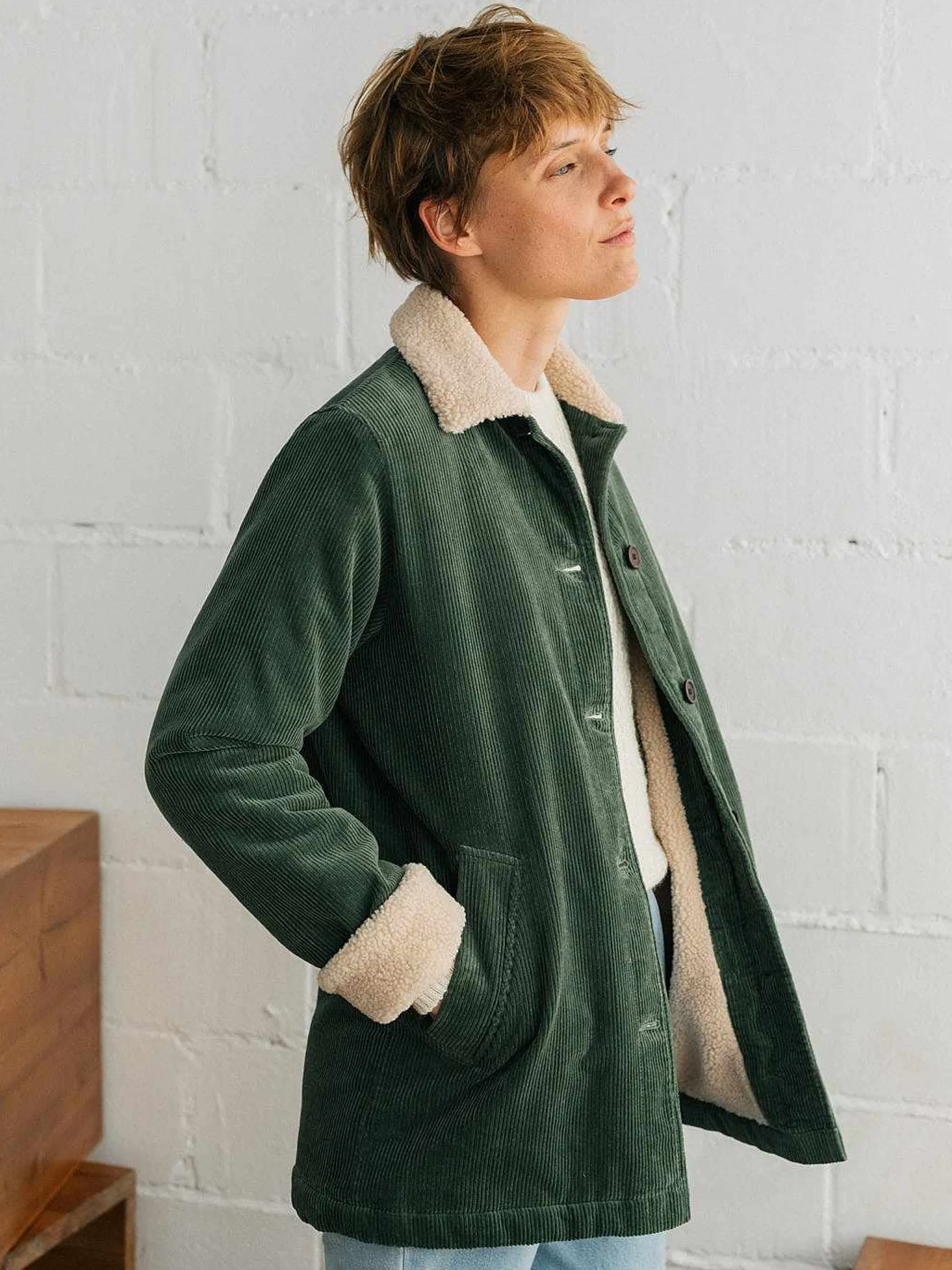 Warme Cordrippen Gepaart Mit Dem Weichsten Sherpa-Fleece Ergeben Die Russell, Eine Mittelschwere, Nachhaltige Jacke Mit Zwei Druckknopftaschen Und Bundchen, Die Fur Stil Oder Komfort Hochgeschlagen Werden Konnen.