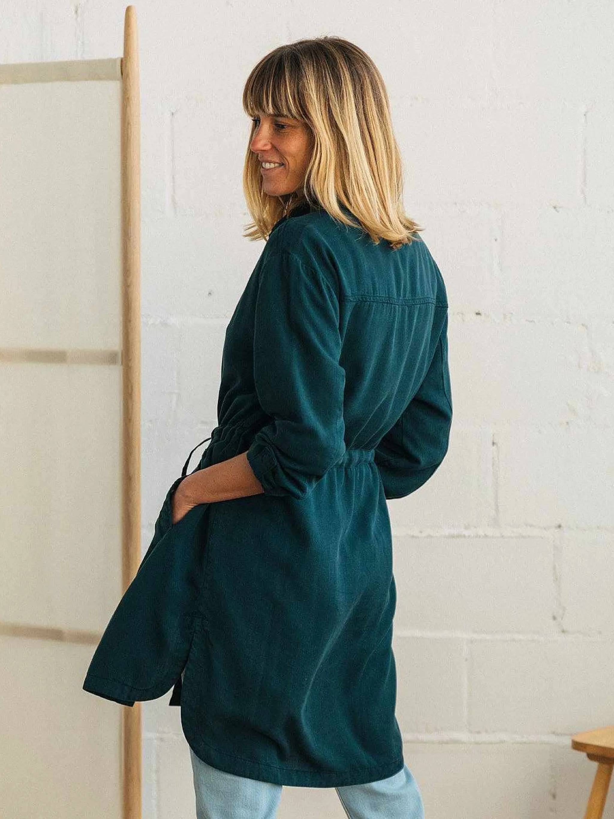 Ein Atemberaubendes Langes Overshirt Aus Nachhaltigem Botanic-Stoff. Der Thule Verfugt Uber Einen Kordelzug In Der Taille, Druckknopfverschlusse, Einen Abgerundeten Saum, Seitliche Schnitte Und Zwei Vordertaschen.