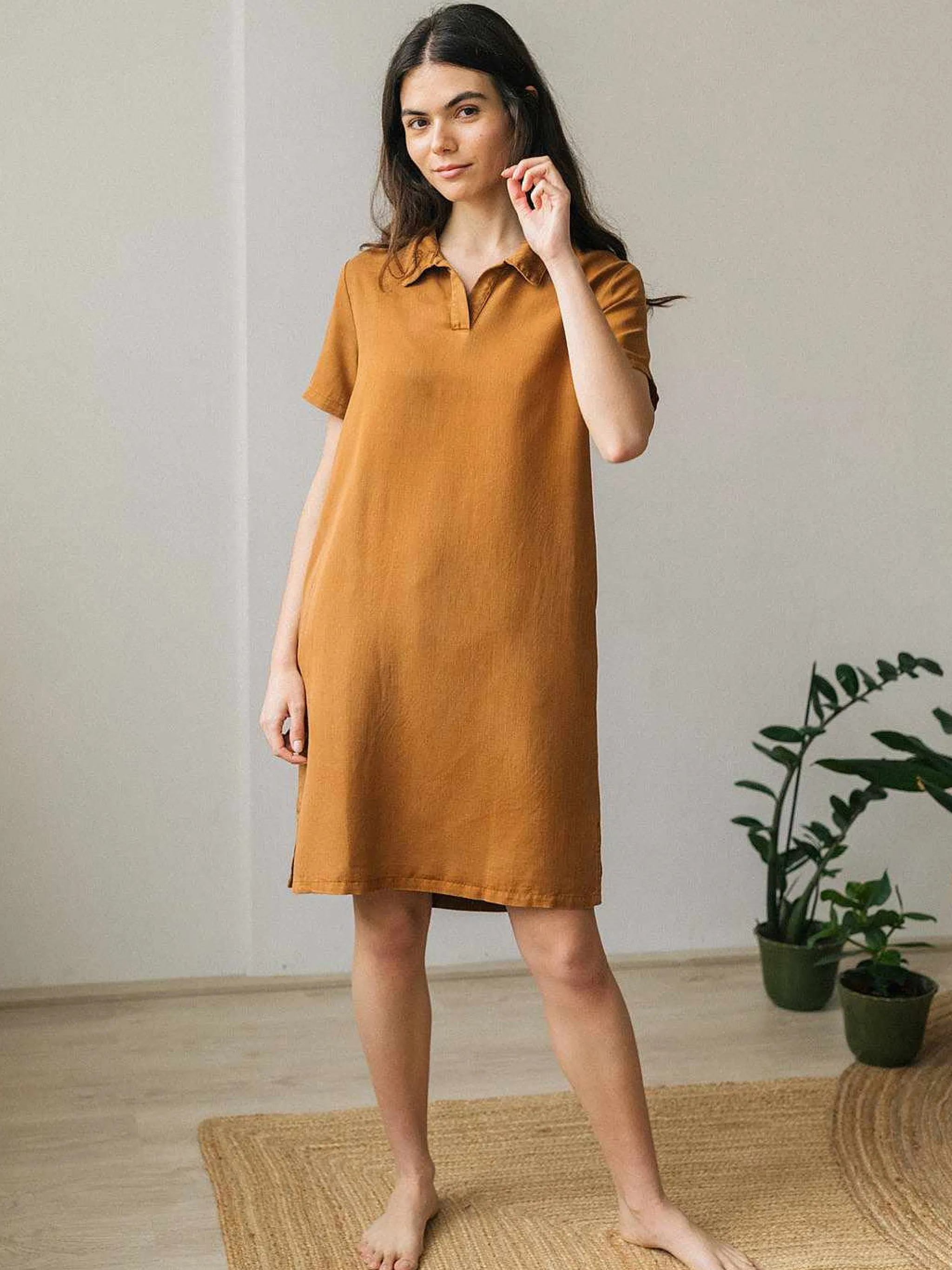 Ein Kleid Im Hemdstil, Hergestellt Aus Einem Weichen Und Atmungsaktiven Stoff, Der Auch Nachhaltig Ist. Der Ginger Ist Mit Seitentaschen, Einem Regelmasig Geoffneten Kragen Und Seitlichen Schnitten An Der Unterseite Ausgestattet. Es Hat Eine Normale Passform Und Ist Unten Lockerer, Bis Es Uber Die Knie Reicht.