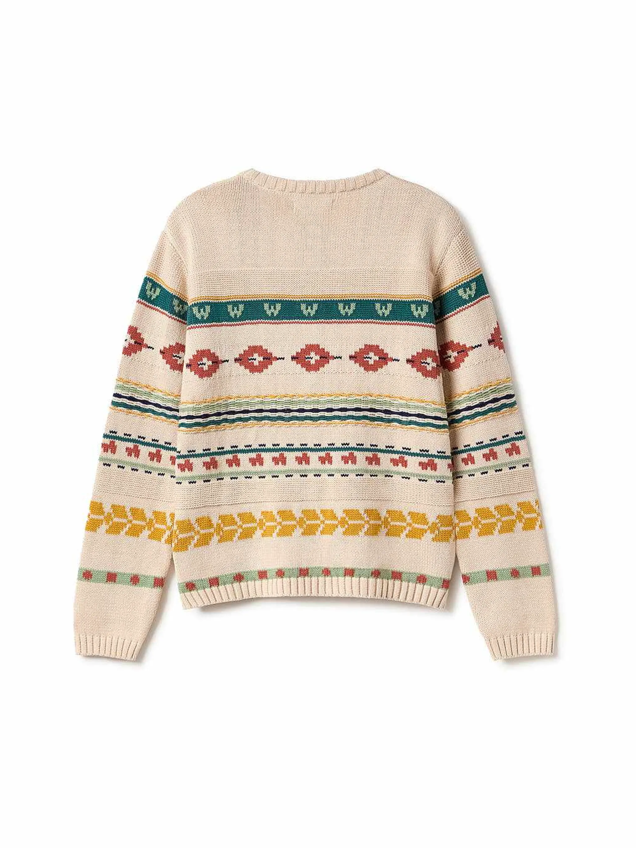 Ein Auffalliges Jacquard-Design Kombiniert Mit Einer Einfallsreichen Mischung Aus Strukturierten Horizontalen Einsatzen In Diesem Nachhaltigen Strick Mit Rundem Ausschnitt Und Gerippten Kanten.