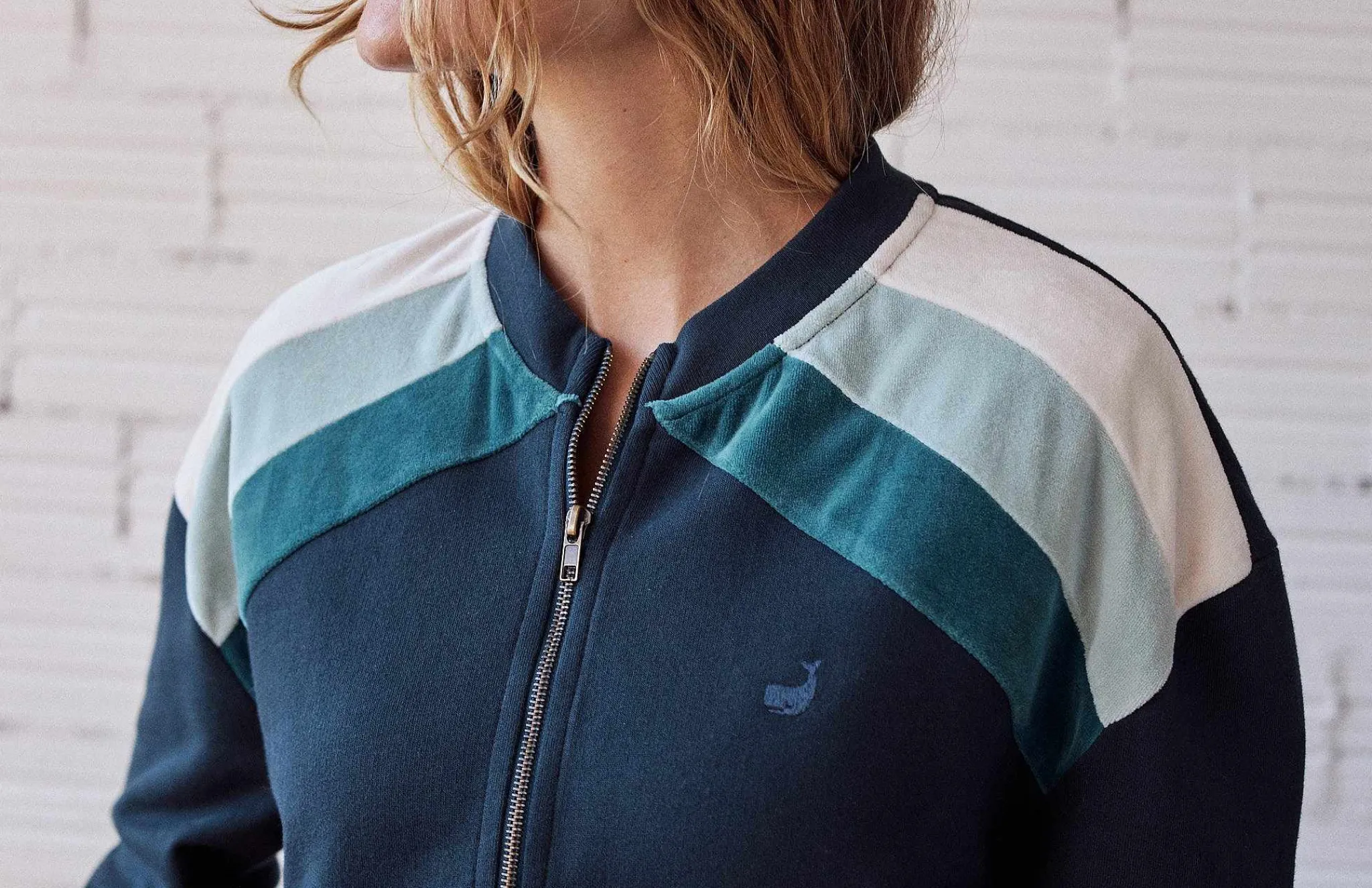 Trendiges Retro-Flair In Einem Bio-Sweatshirt Mit Reisverschluss. Samtstreifendetails An Den Schultern, Ein Fein Gerippter Rundhalsausschnitt Und Kanten Sowie Seitentaschen Runden Diesen Coolen, Lassigen Look Ab.
