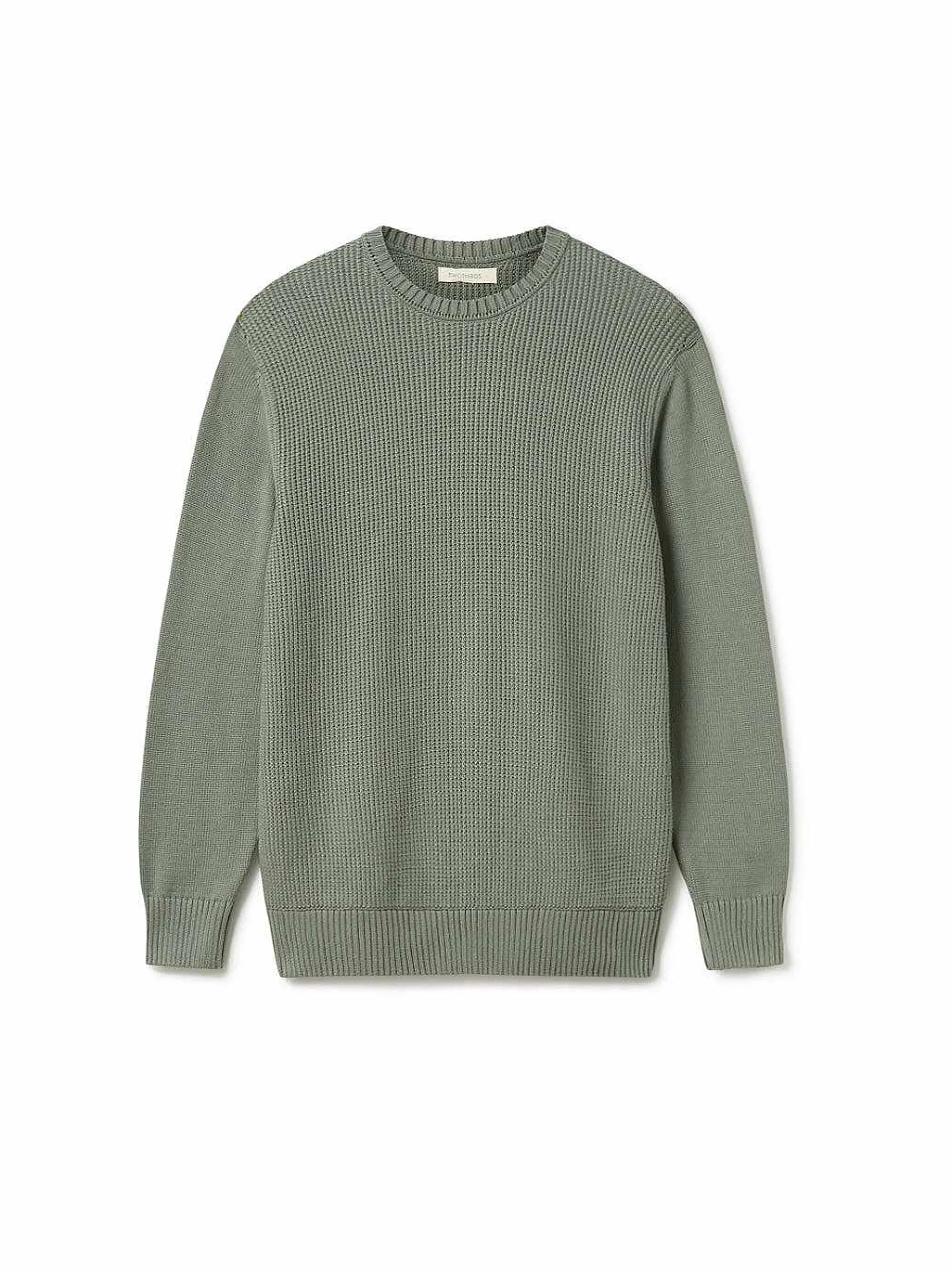 Ein Korper Im Waffelstrick-Design Kontrastiert Mit Glatteren Armeln Und Gerippten Kanten, Um Dieses Stilvoll Zuruckhaltende Stuck Zu Schaffen. Passt Perfekt Zu Allen Unseren Nachhaltigen Shorts Oder Hosen.