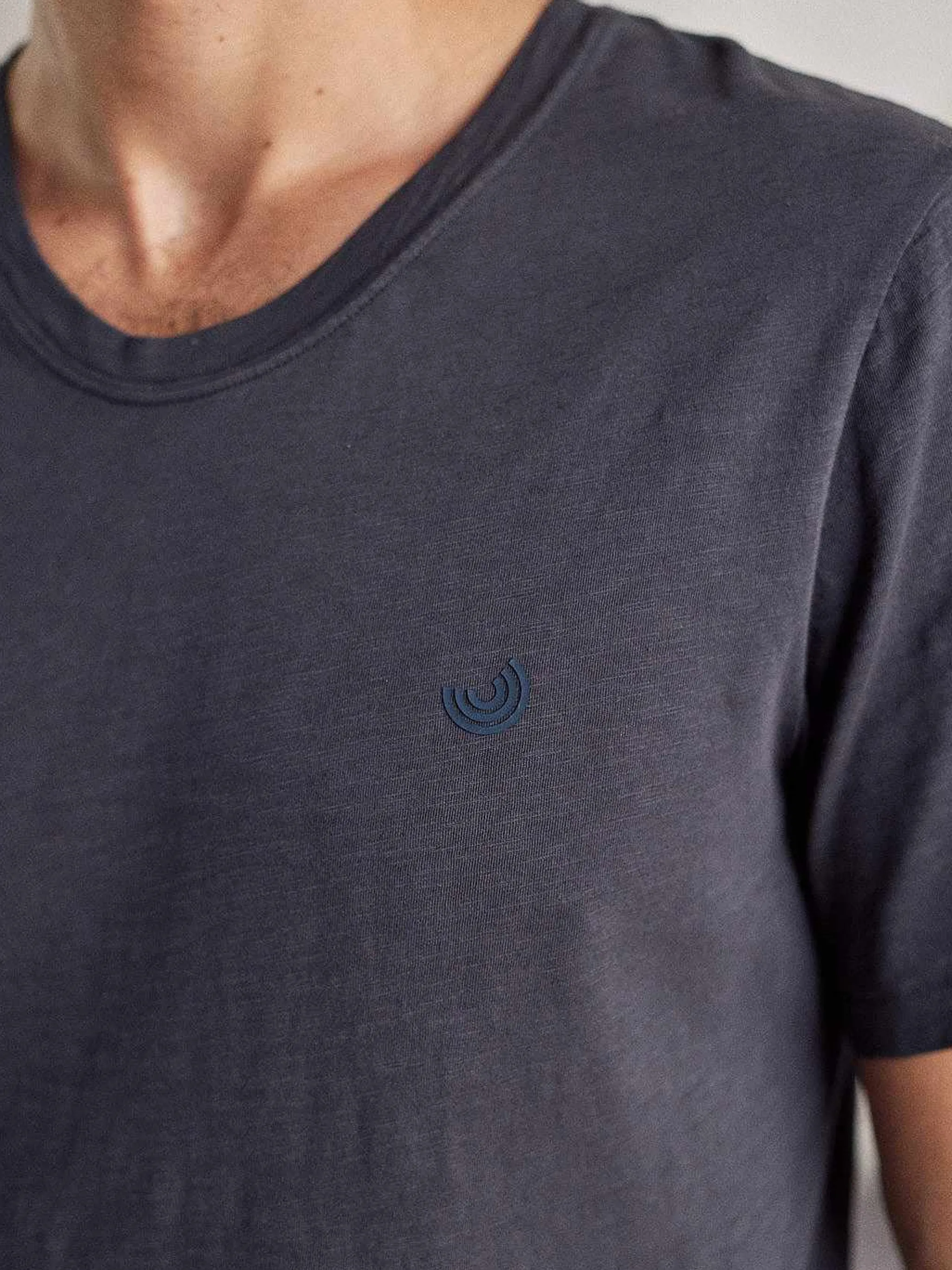 Ein Unverzichtbares Herren-T-Shirt Fur Jeden Tag Mit Abgerundetem V-Ausschnitt. Aufgedrucktes Logo, Ein Abgerundeter Saum Und Leicht Uberschnittene Schultern Machen Dieses Weiche Bio-T-Shirt Zu Einem Nachhaltigen Mode-Favoriten.